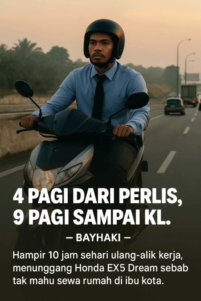 Dia menunggang Honda EX5 Dream, dan memilih kerja yang disifatkannya sebagai “g!l@q”